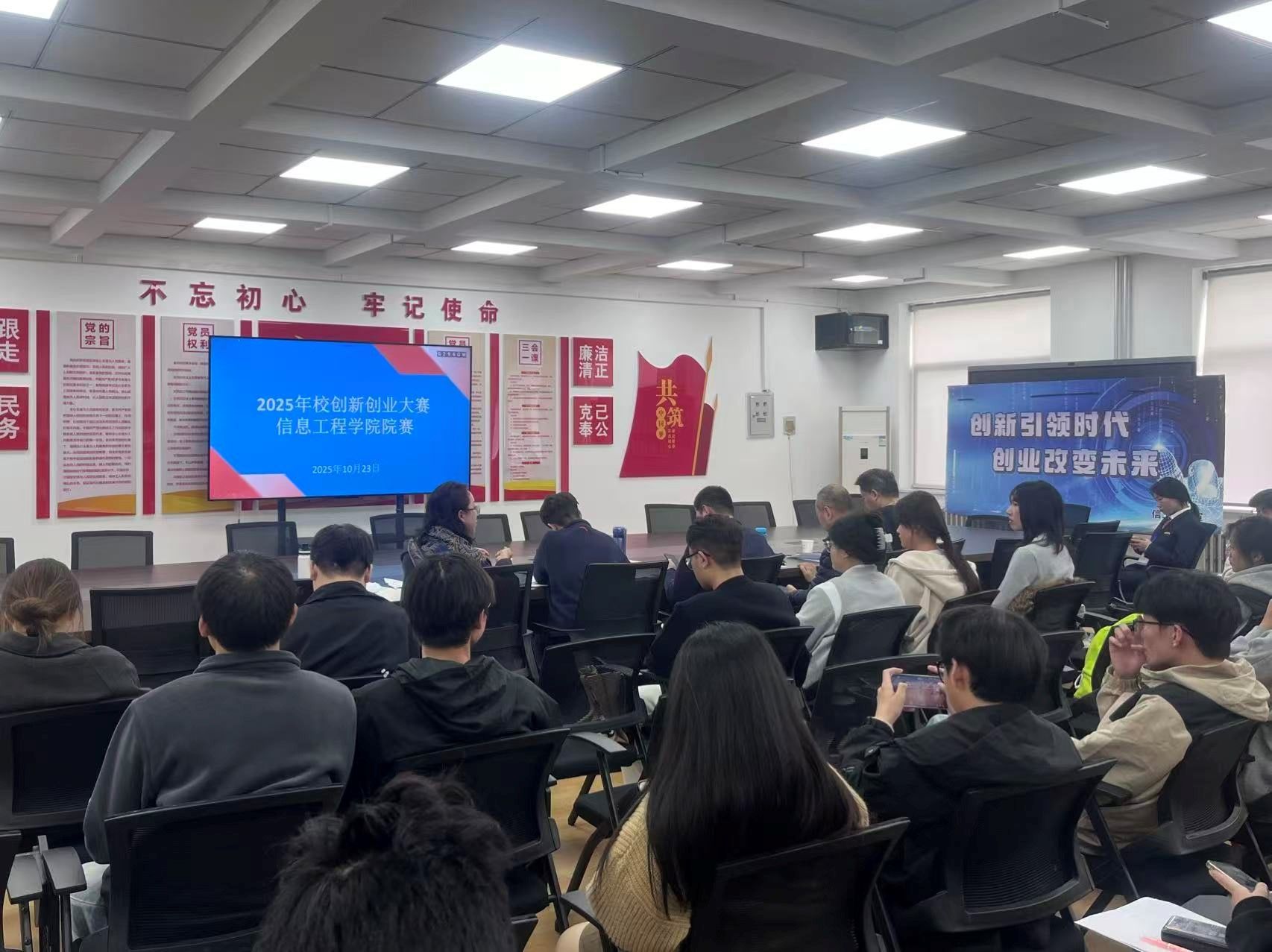 2025年10月23日,信息工程学院在商管楼218会议室隆重举办2025年校创新创业大赛信息工程学院院赛。本次赛事聚焦创新驱动发展战略,旨在激发学生创新潜能,培育创业意识,提升实践能力,营造“我敢闯 我会创”的浓厚氛围,为校级创新创业大赛选拔优秀项目和人才。本次院赛共计600余个团队报名,经过初选有15个团队的项目进入院赛路演环节。