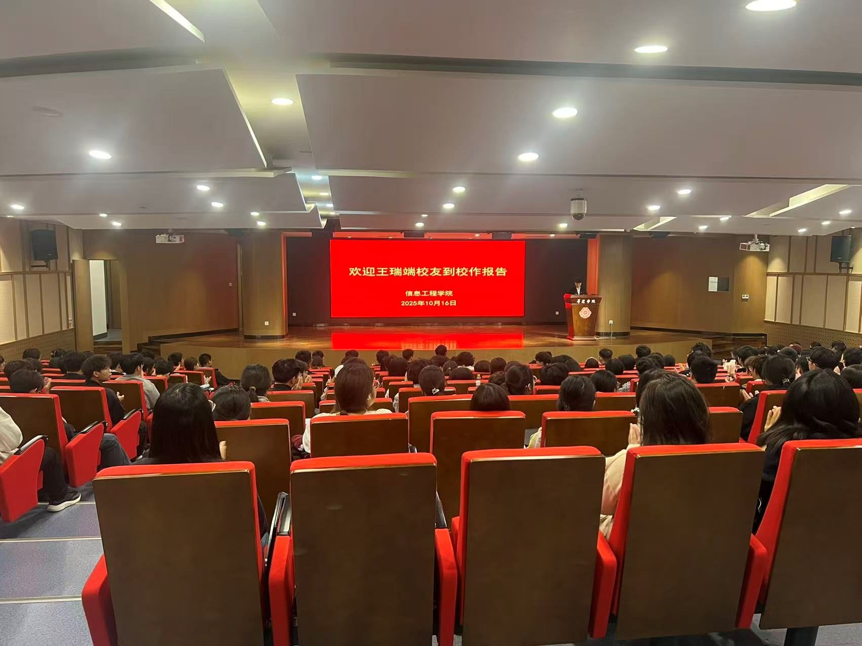 2025年10月16日下午2点,信息工程学院邀河南蓝鸥科技有限公司副总经理、学校知名校友王瑞端,在双创大讲堂为25级新生作“你的专业未来,如何被AI人工智能重塑?”主题学术报告,助力学子明晰AI时代专业发展方向,活动圆满成功。