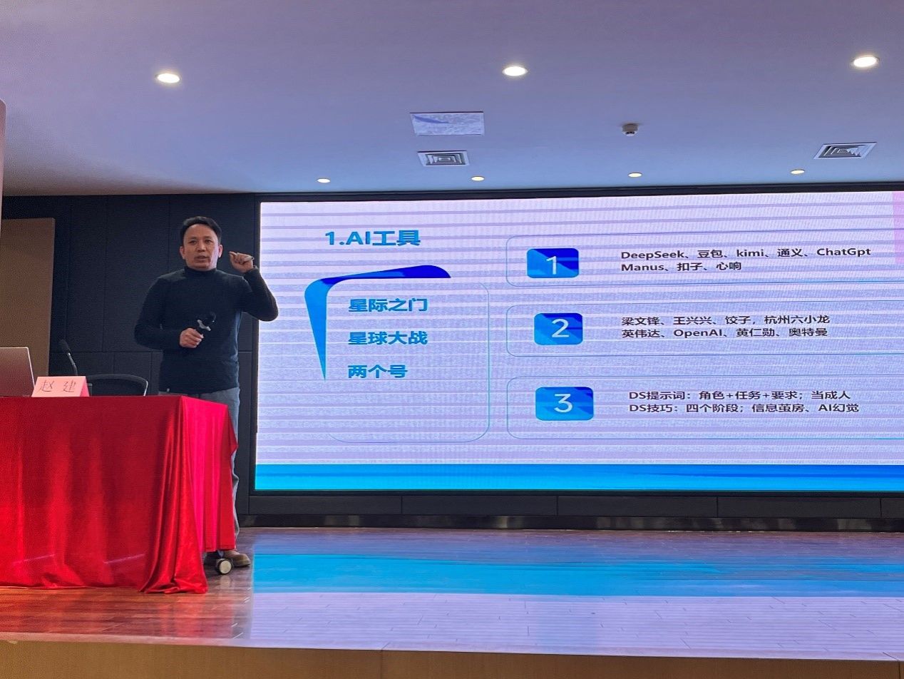 在分享过程中,赵建还针对在场师生关心的就业方向、能力培养等问题进行了深入解答。他建议,想要投身智慧高校及相关领域的青年学生,应注重跨学科知识的积累,积极参与实践项目,提升解决实际问题的能力。讲座接近尾声时,师生们围绕智慧高校建设的具体细节、青年参与的途径等话题与赵建展开深入交流。