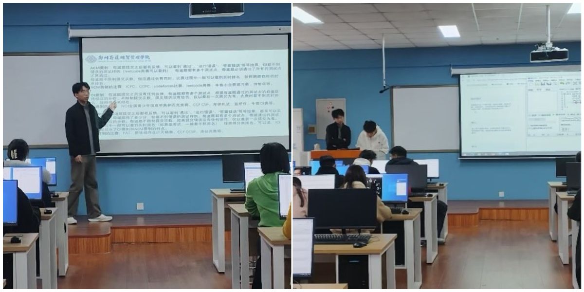 2025年10月25日,ACM协会成员于晓乐,马永辉于资讯楼为计算机科学与技术4班新生开展专业竞赛教育。