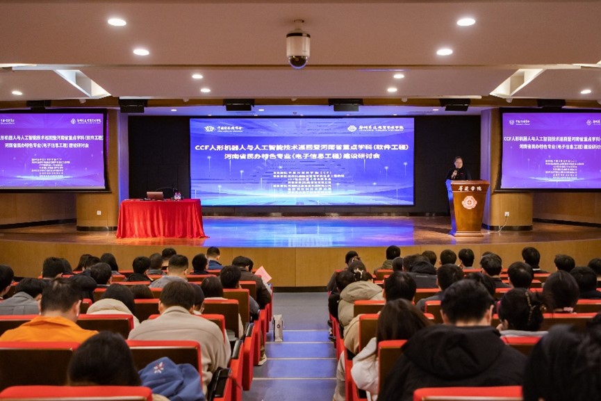 2025年11月6日,CCF人形机器人与人工智能技术巡回暨河南省重点学科(软件工程)、河南省民办特色专业(电子信息工程)建设研讨会在我校实训大楼A座双创大讲堂成功举行。此次会议由中国计算机学会(CCF)主办,郑州升达经贸管理学院信息工程学院、CCF智能机器人专业委员会、乐聚智能(深圳)股份有限公司联合承办,河南新工匠智能系统有限公司、金冠同利科技有限公司、郑州昊众电子科技有限公司协办。