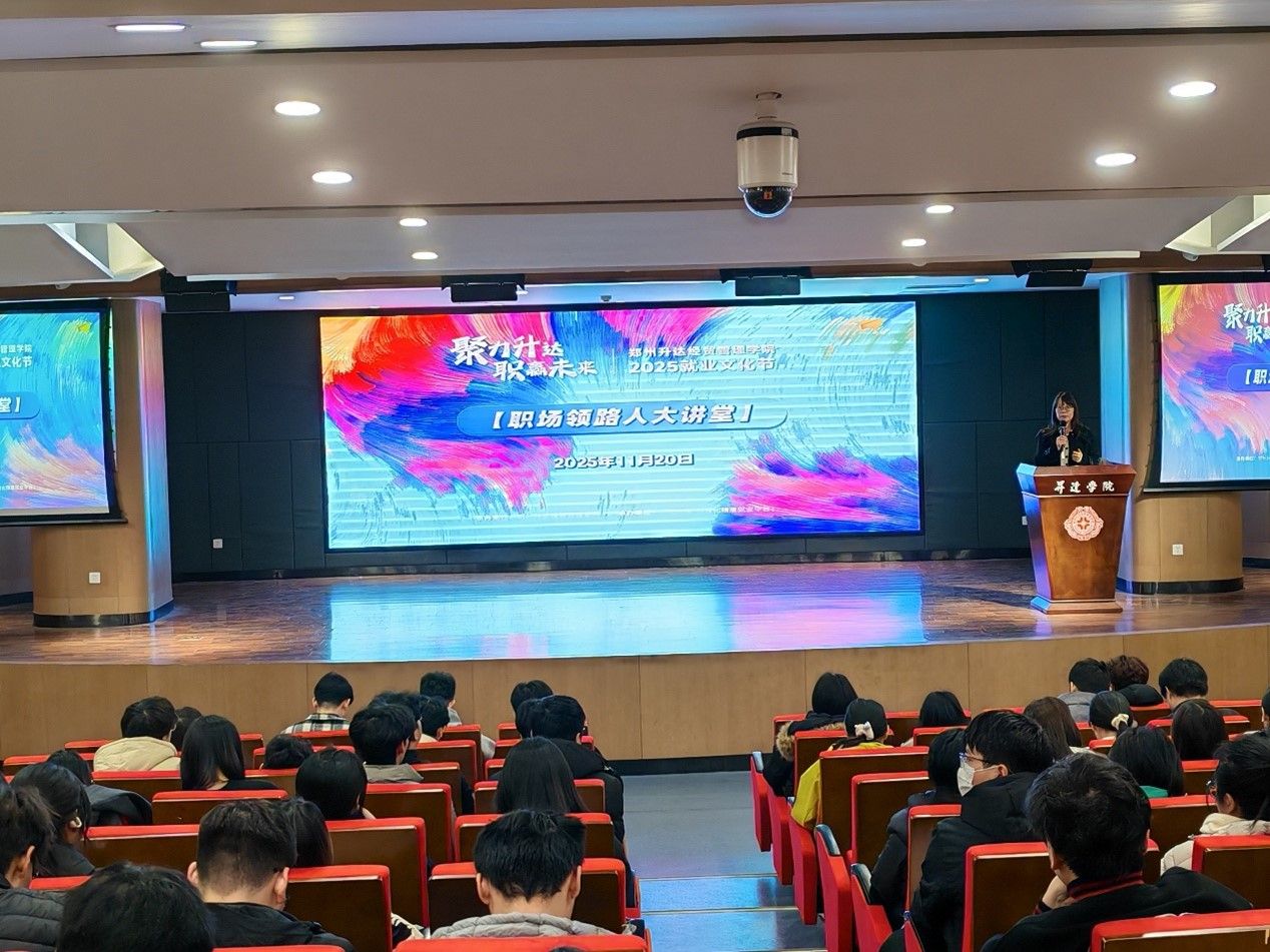 为帮助信息工程学院学子明确职业发展方向,提前做好职场准备,破解从校园到职场的过渡难题,在我校就业处的指导与支持下,学院于2025年11月20日下午16:30,在综合实训大楼A座报告厅隆重举办职业规划专题讲座。本次讲座特邀郑州时空隧道信息技术有限公司人力资源总监陈楠女士担任主讲人,围绕“从校园到职场的成长密码”这一核心主题,为在场师生带来了一场兼具实用性与前瞻性的精彩分享。