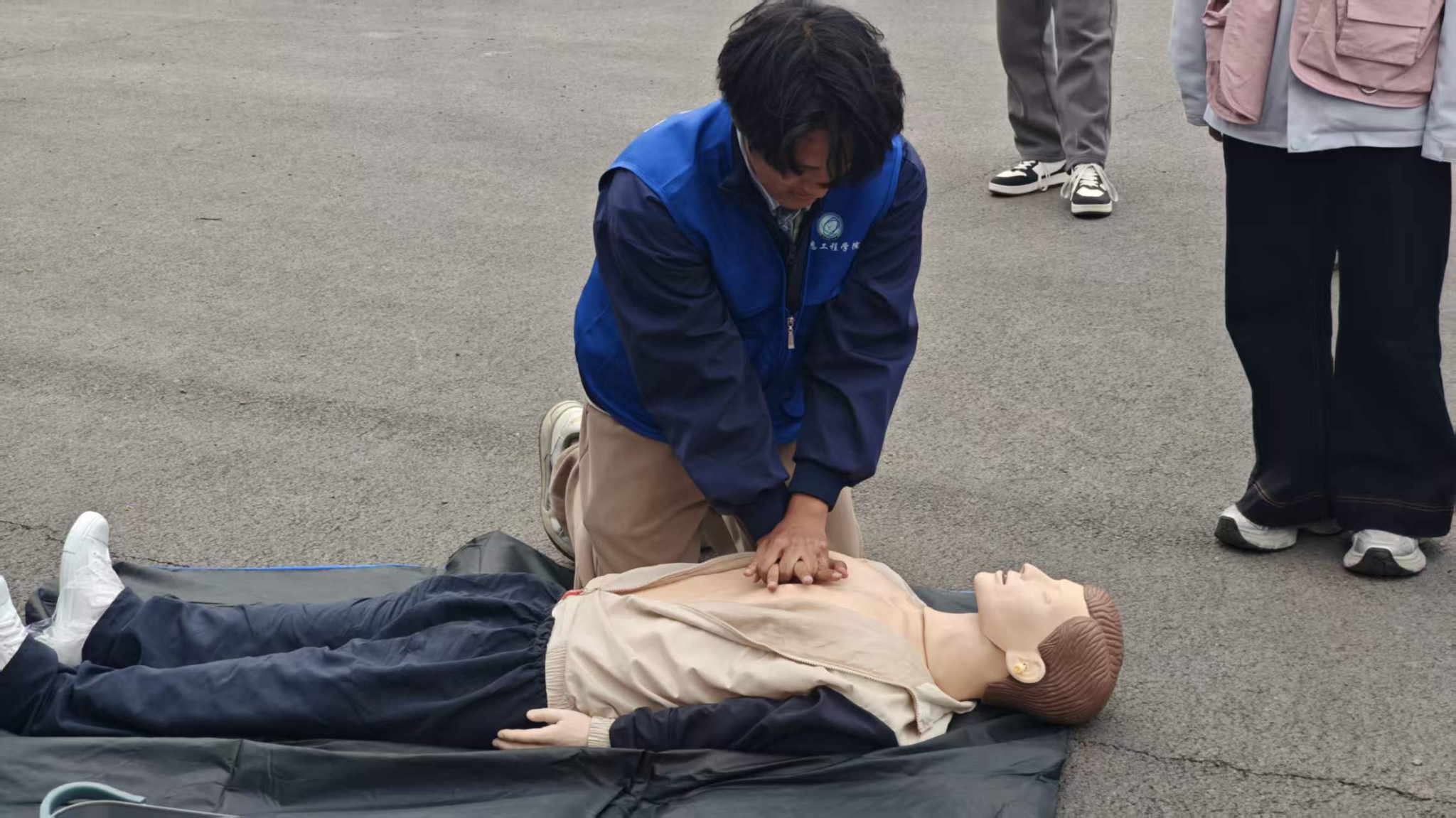 为提升同学们的应急处置能力,活动特别开设自救互救小课堂,邀请校医院医生、红十字会志愿者现场教学。工作人员借助假人模型与教学道具,详细讲解并演示海姆立克急救法、心肺复苏操作流程、常见部位止血包扎等实用技能,耐心纠正动作细节。同学们踊跃上前体验,在实操中掌握急救要领,切实提升自救与互救能力。
