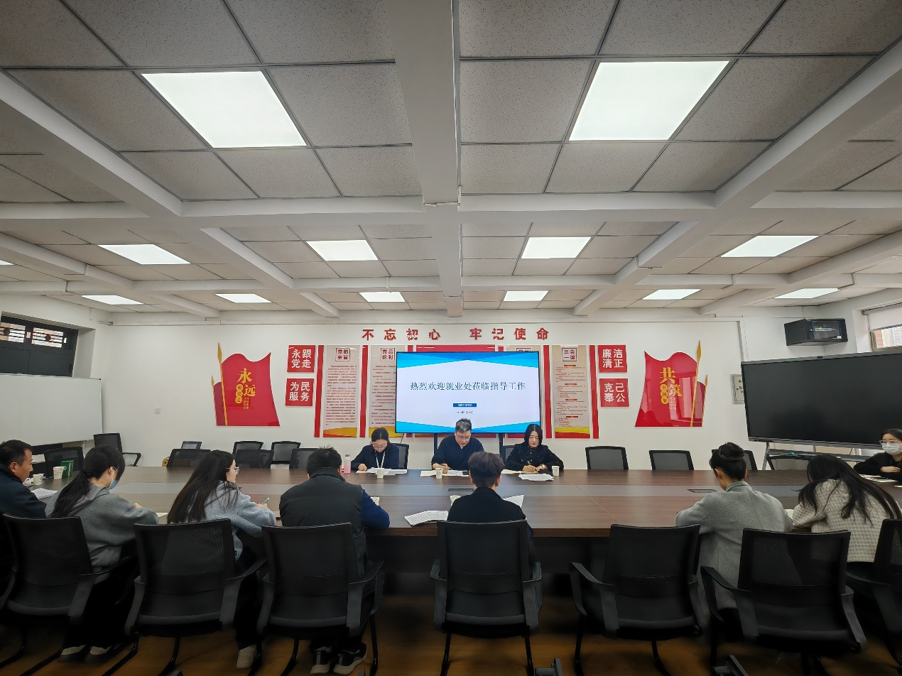 会上,钟江鸽书记首先对就业处一行的莅临指导表示热烈欢迎,并围绕学院就业工作整体推进情况作汇报。他从党建引领就业、就业服务体系建设、毕业生就业心态引导等方面,详细介绍了学院在促进毕业生高质量就业中的举措与成效,重点分析了当前就业工作面临的行业趋势变化、毕业生求职偏好等新形势。