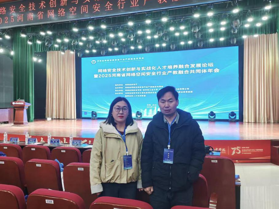 为深化网络空间安全领域产教融合,探索技术创新与实战化人才培养新路径,近日,网络安全技术创新与实战化人才培养融合发展论坛暨 2025 河南省网络空间安全行业产教融合共同体年会在郑州隆重召开。12月20日,信息工程学院组织骨干教师宁跃飞和李萍参加了本次盛会,与来自政府部门、高校院所、行业企业的专家学者共话行业发展与人才培养大计。