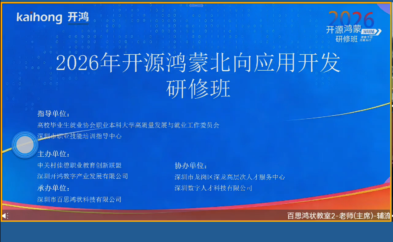 2026年1月22日至27日,郑州升达经贸管理学院信息工程学院软件工程专业焦阳、刘侠、陈曦、郭孟鸽四位教师,共同参加了2026年“开源鸿蒙北向应用开发”线上研修班。本次研修班由中关村佳德职业教育创新联盟与深圳开鸿数字产业发展有限公司联合举办,并得到开放原子开源基金会支持,旨在推动开源鸿蒙技术进校园,助力高校教师掌握北向应用开发的前沿技术与教学方法。