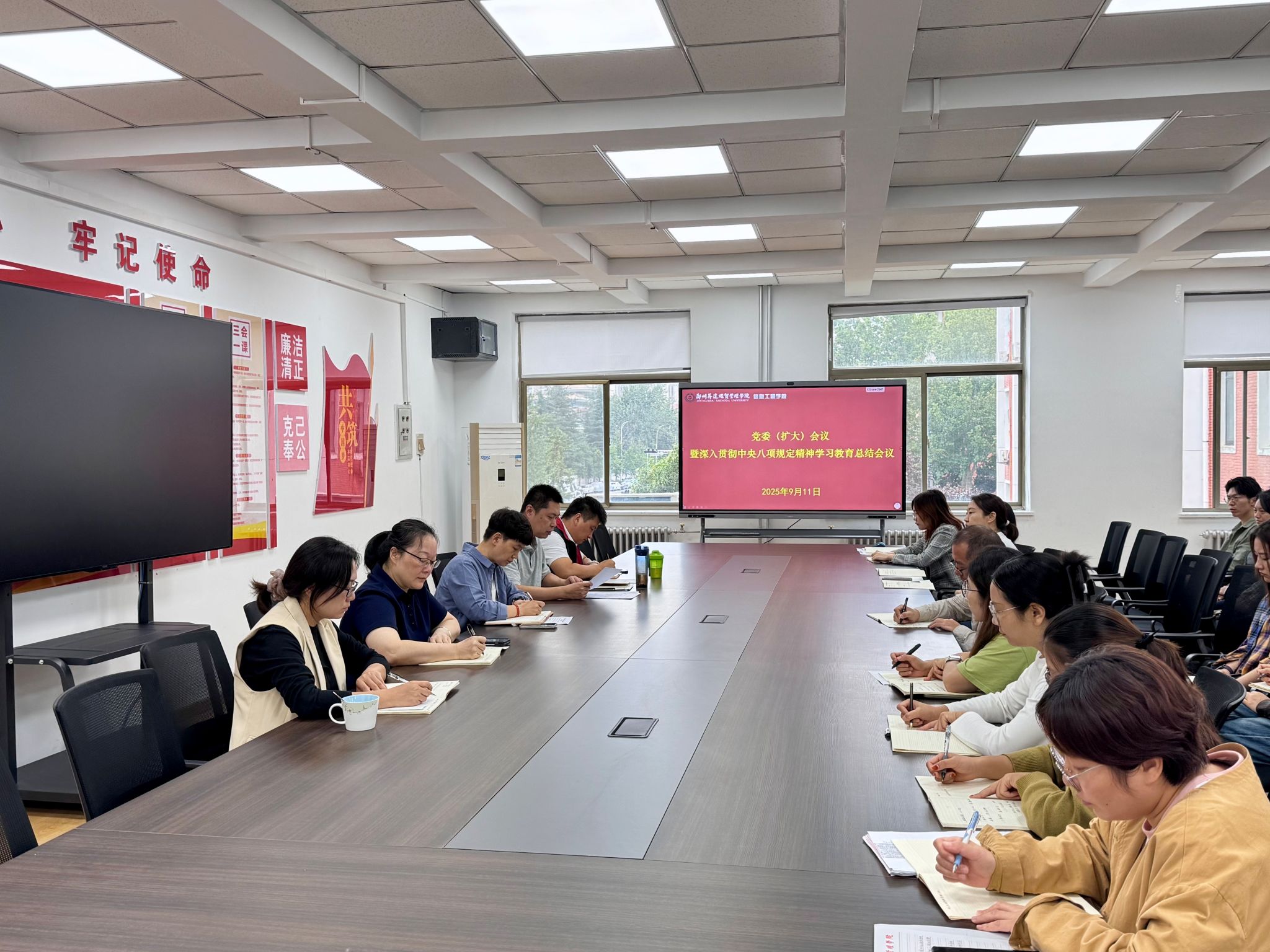 与会人员认真聆听会议内容,围绕上级精神落实、学习教育总结及收尾工作安排展开深入交流。大家纷纷表示,将以此次会议为契机,切实把中央八项规定精神融入岗位职责,以更严标准、更实作风推进各项工作,为学院高质量发展提供坚强纪律保障。