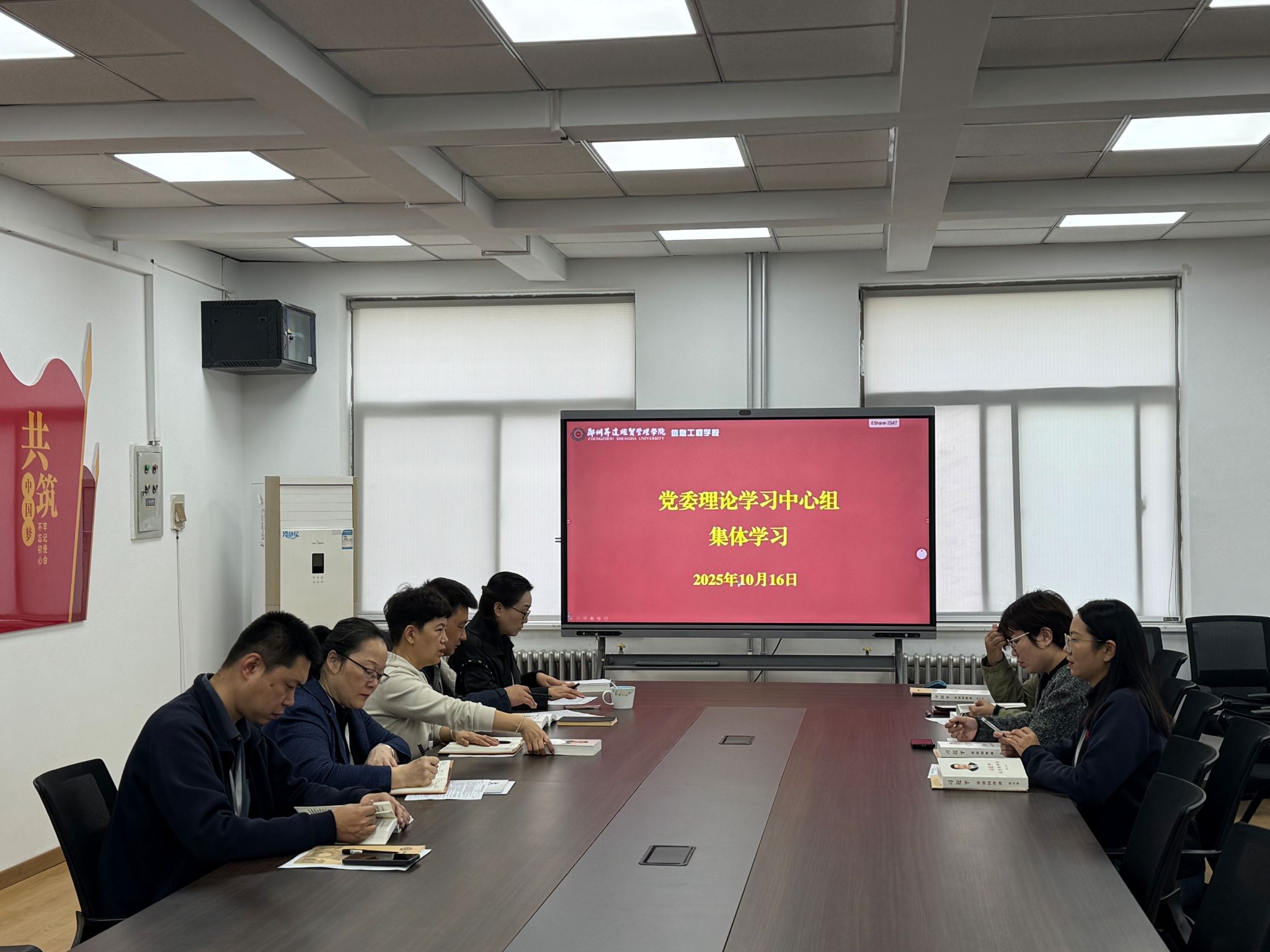 10月16日上午9时,信息工程学院在商管楼218会议室召开了党委理论学习中心组学习会议。本次会议由学院党委书记钟江鸽主持,全体党委委员参加。
