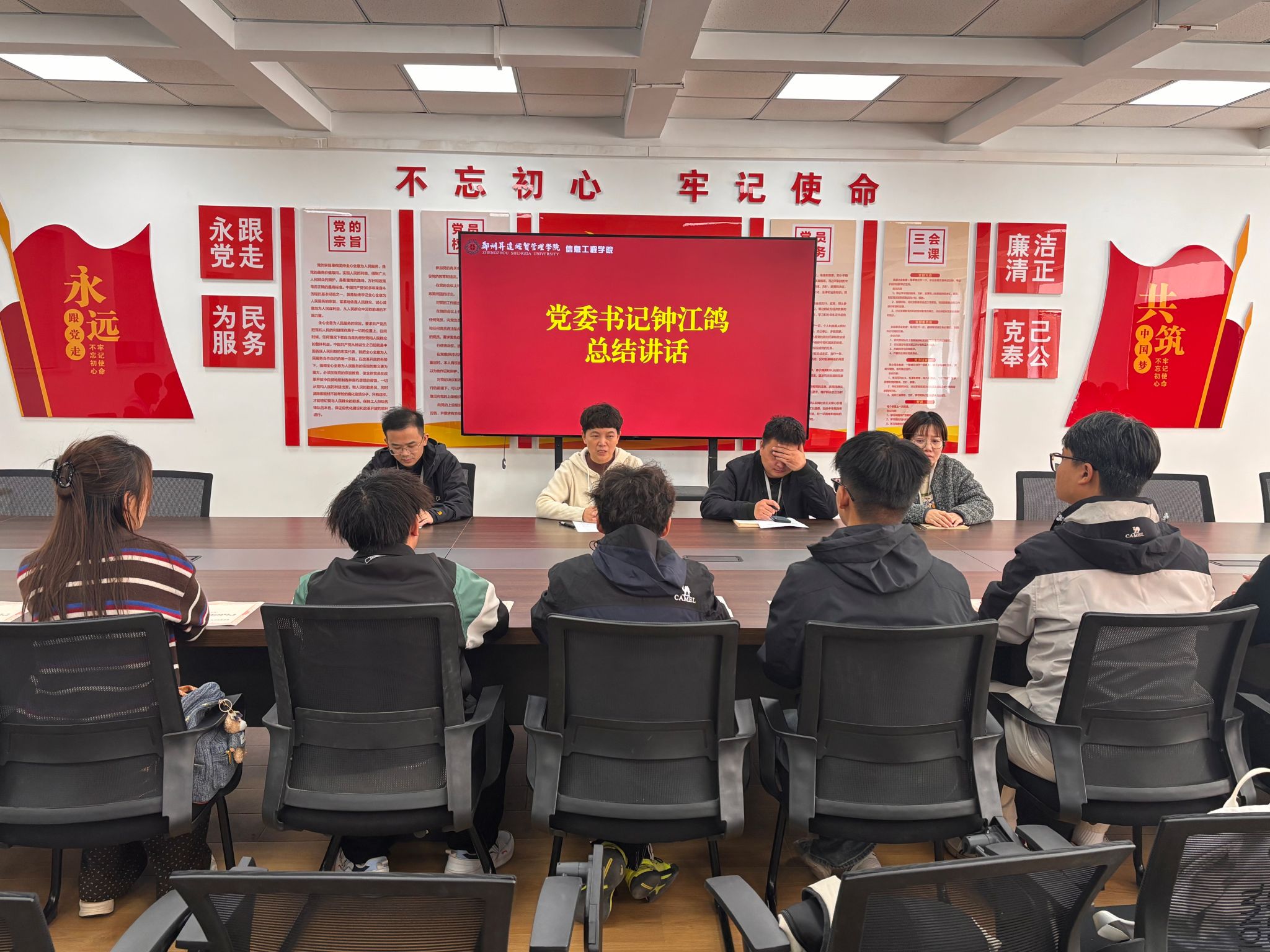 大会最后,钟江鸽书记作总结讲话。她指出,学生党建管理中心是学院开展思政教育、推进党团建设的核心阵地,对引领青年学生成长具有重要意义;同时对新成员提出三点要求:一是强化政治引领,做思想建设的“领航员”;二是践行服务宗旨,做师生桥梁的“联络员”;三是锤炼过硬作风,做组织建设的“护航员”。