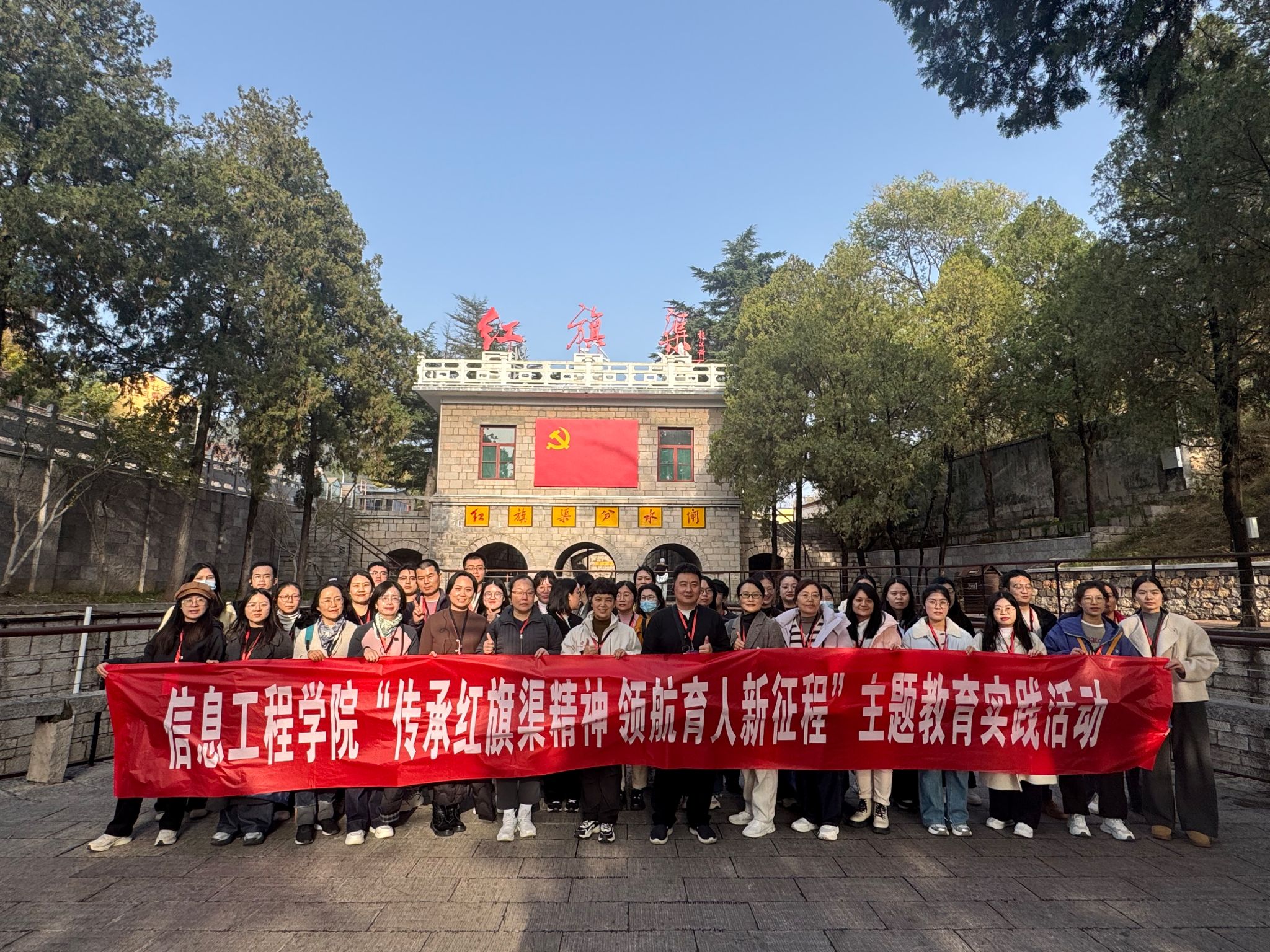 为深入学习贯彻习近平总书记关于传承红色基因、弘扬革命精神的重要论述,扎实推进学院党建品牌领航工程建设,引导基层党建队伍从红色精神中汲取奋进力量、强化使命担当,11月8日至9日,信息工程学院党委组织学院党委委员、党支部书记、党支部委员等赴河南省安阳市林州市红旗渠红色教育基地,开展“传承红旗渠精神 领航育人新征程”主题教育实践活动。